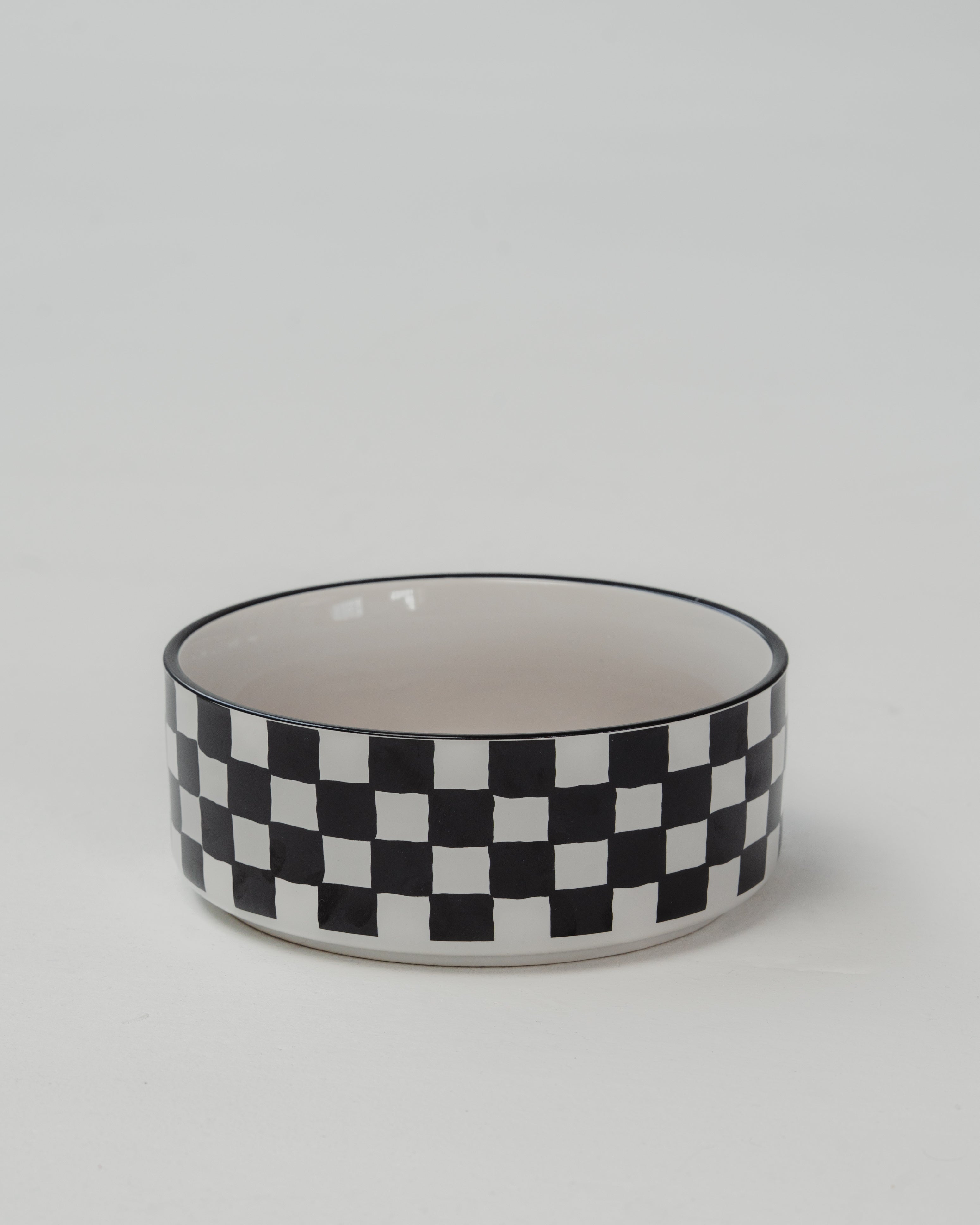 Black & White Checkers Time Ceramic Dog Bowl – 50oz/8 inches
